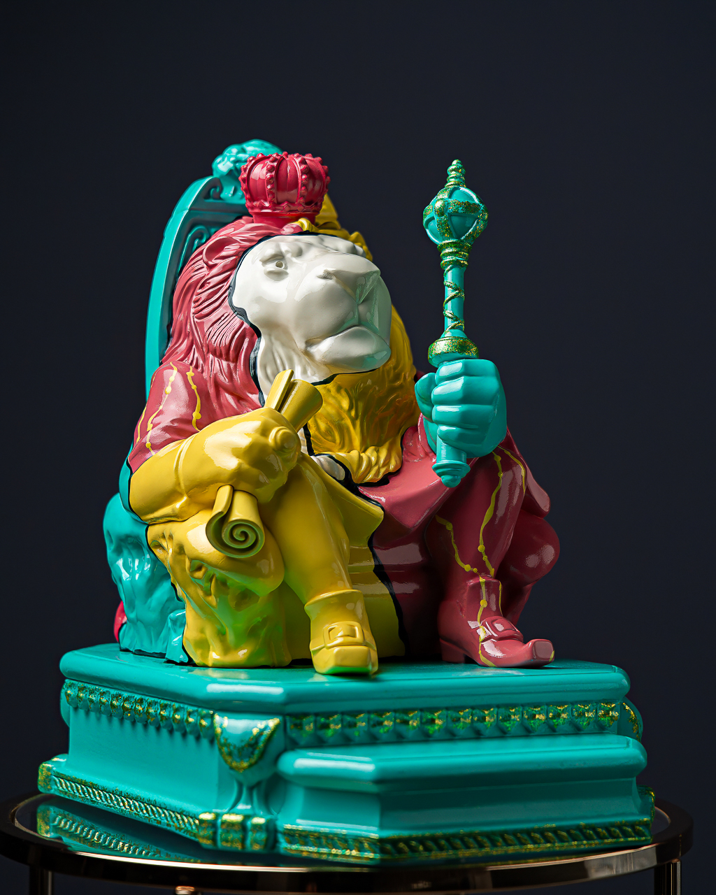 Статуэтка «Лев – Этюды Созвездий» воплощает величие и уверенность знака зодиака. Торжественный образ льва, восседающего на троне с скипетром, выполнен в яркой художественной манере: выразительная пластика, смелые контрастные тона и детально проработанные элементы создают эффектную декоративную композицию. Идеальный подарок для тех, кто ценит символику силы, лидерства и яркий дизайнерский стиль.
